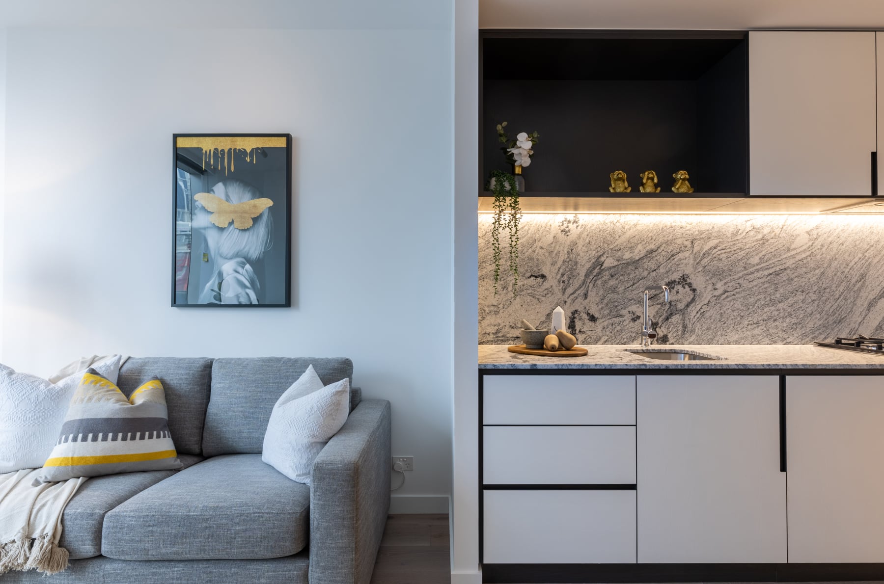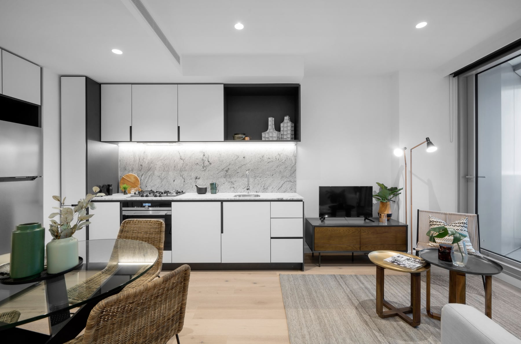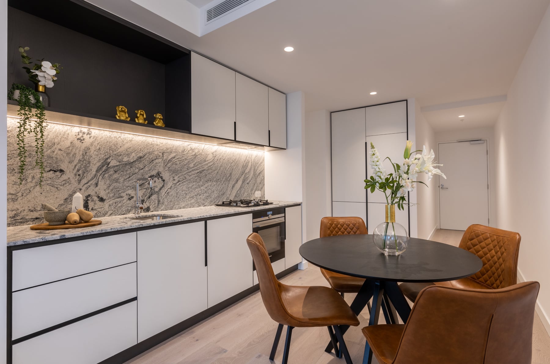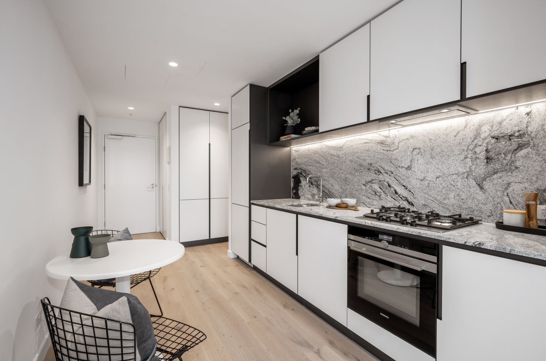 Surround yourself with modern luxury in these artfully designed one-bedroom apartments. With integrated European appliances, elegant natural stone finishes, and an abundance of natural light, these apartments are the epitome of urban sophistication.