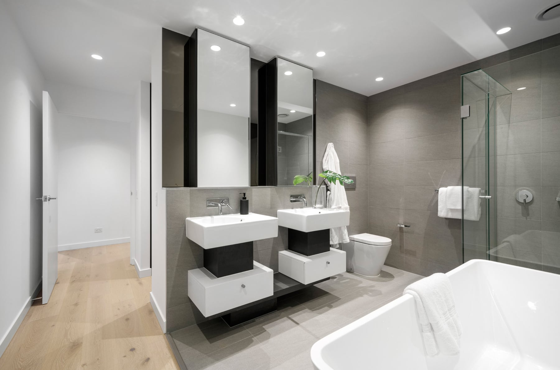 Discover the epitome of modern living in our 3-bedroom apartments. Boasting a study for productivity, engineered oak flooring, natural stone finishes, walk-in robes, and plush wool carpet for luxurious comfort. Welcome home.